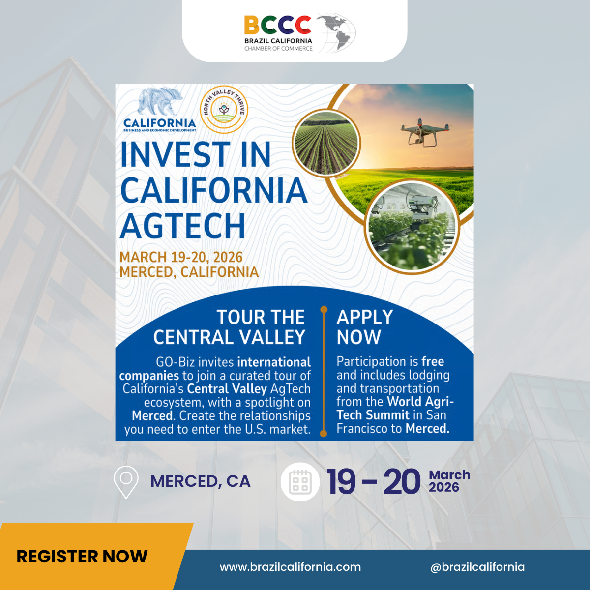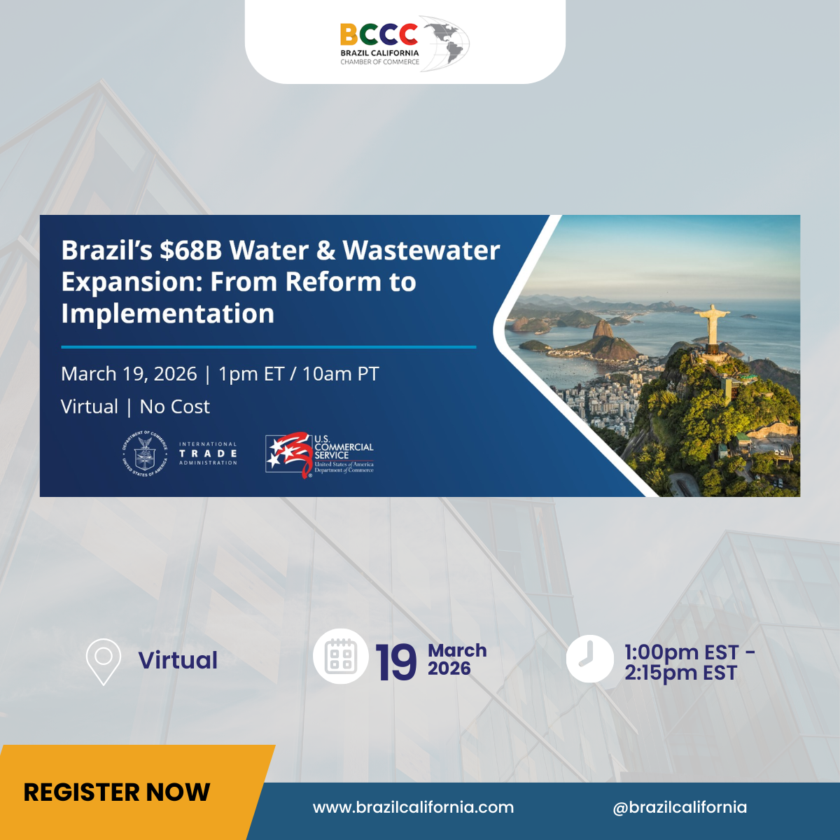 "The mission of Brazil-California Chamber of Commerce (BCCC) is to promote institutional and business relations, trade and collaboration between Brazilian entities in California and U.S. entities with an interest in the Brazilian market. Become a member now!"